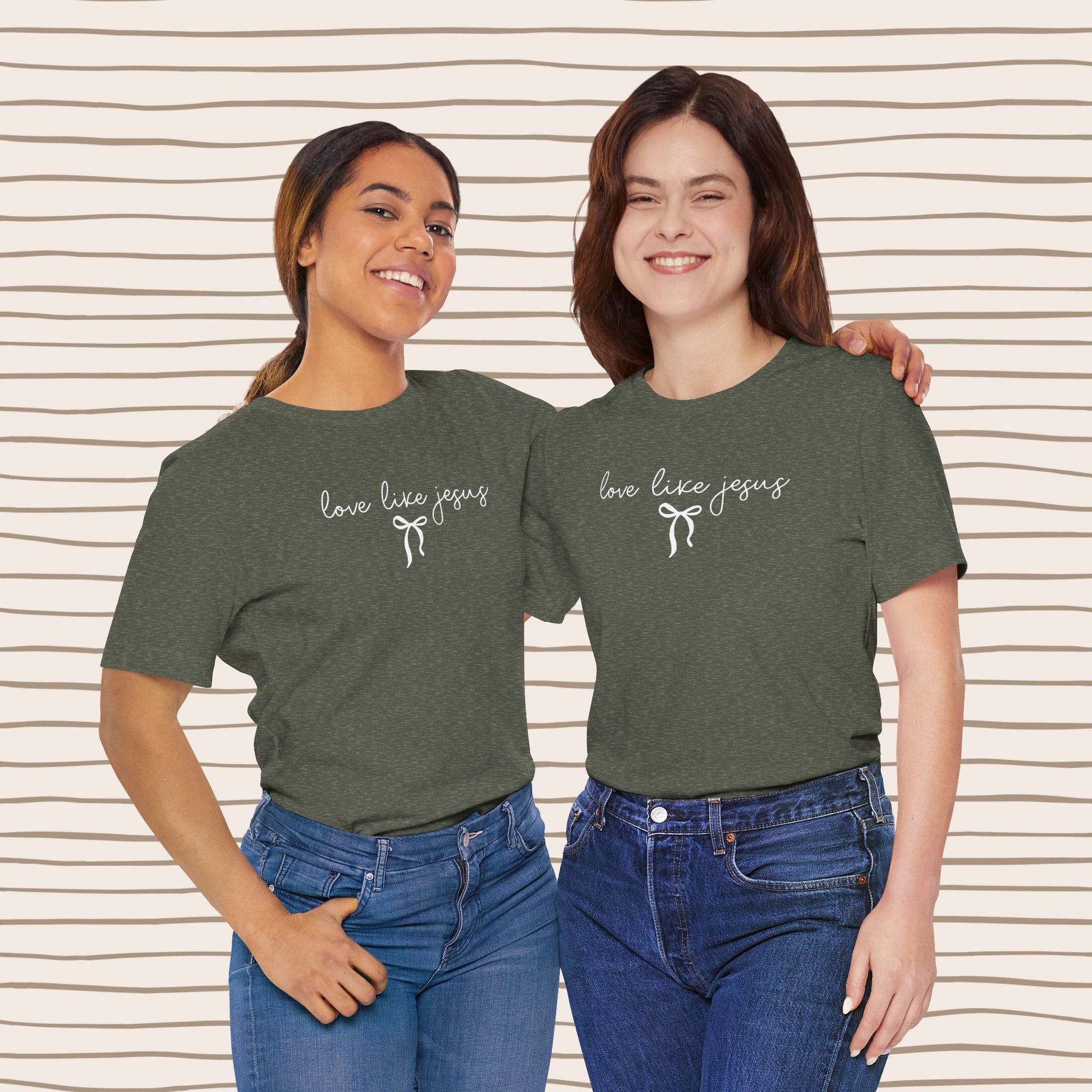 πΒ βLove Like JesusβΒ text with a simple bow for a soft, girly touch