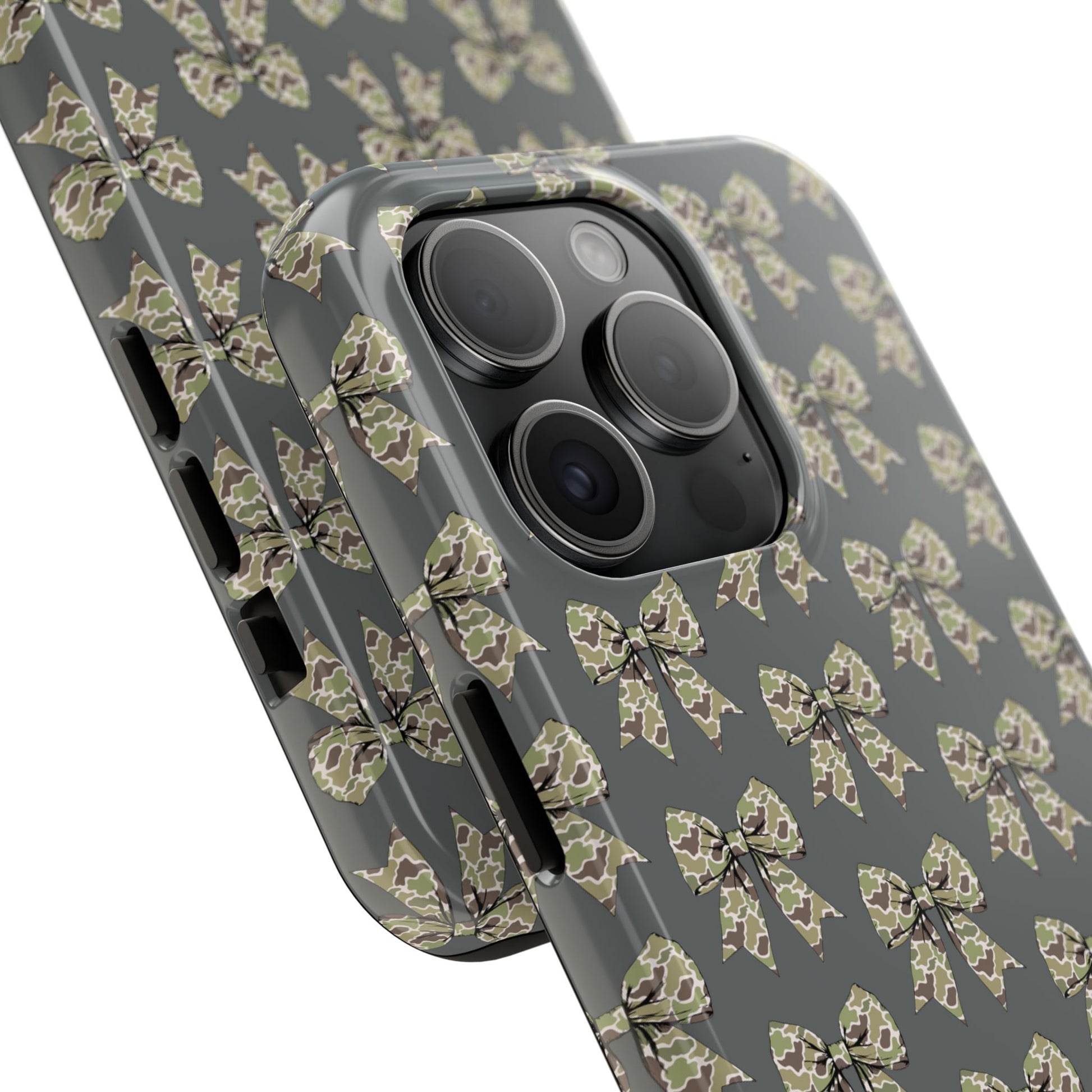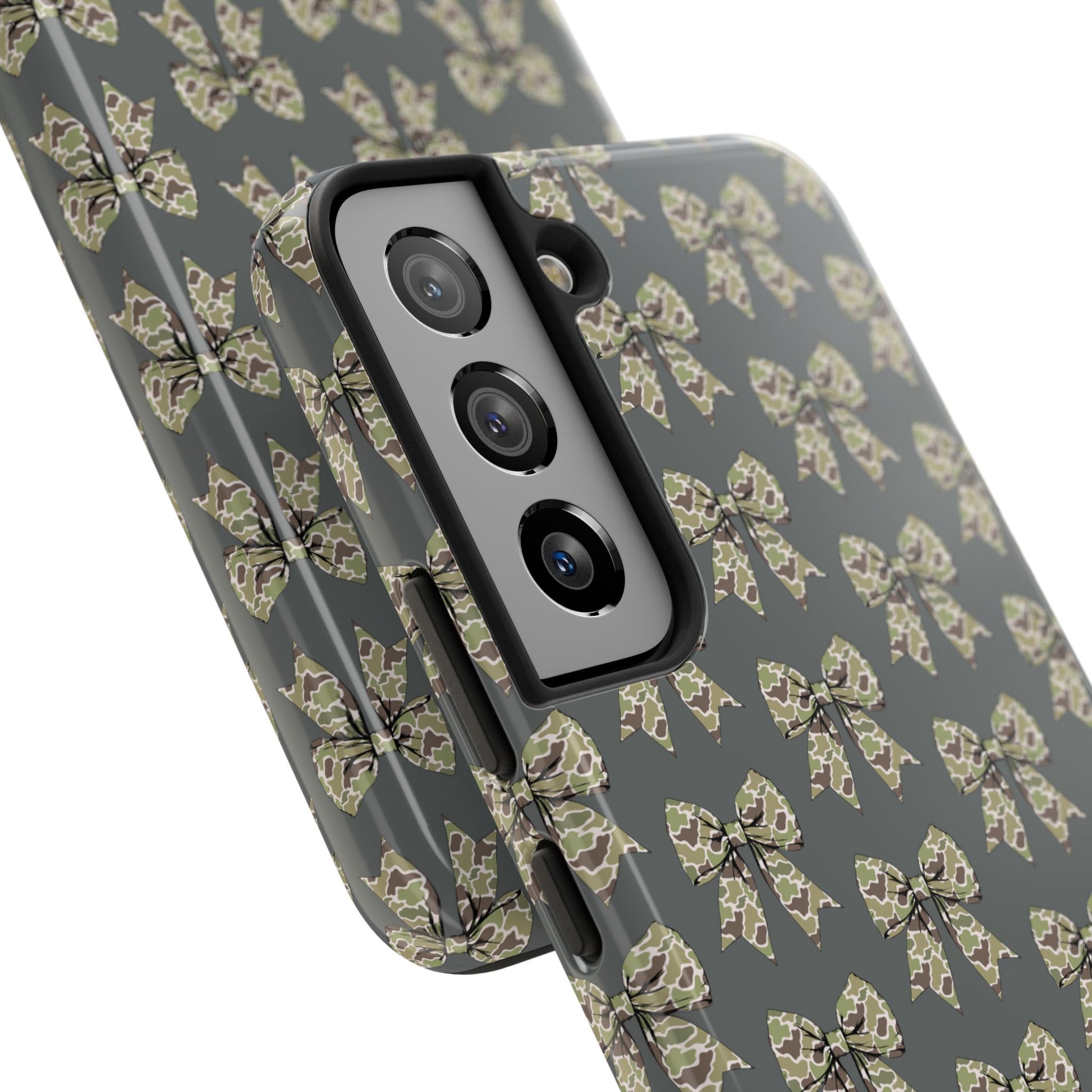 This vintage camo bow phone case adds the perfect touch of rustic charm and playful style to your device. ย